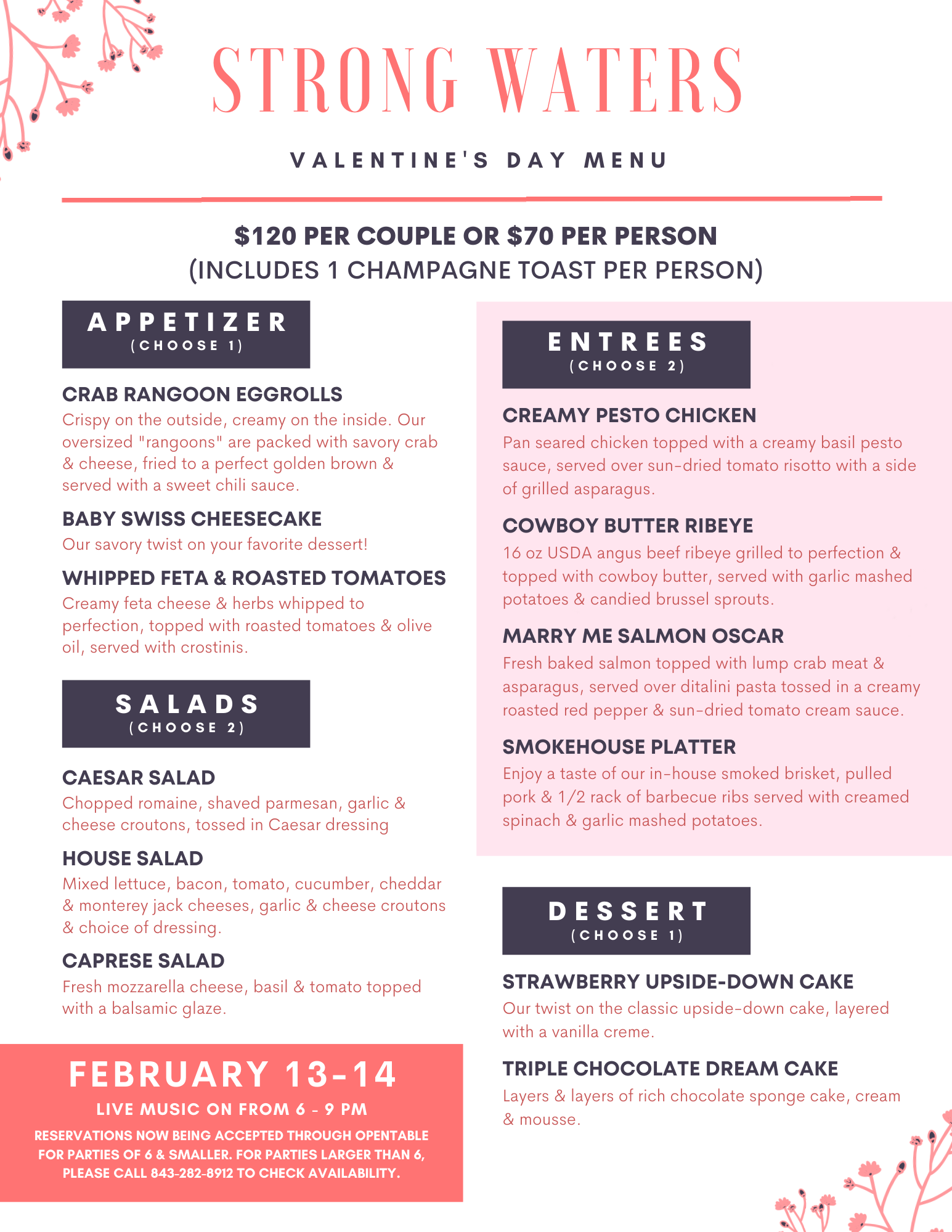 Enjoy craft cocktails, coastal cuisine, and live music in the stylish, speakeasy-inspired atmosphere of Strong Waters Craft Cocktails & Kitchen. Sip expertly crafted drinks, savor Southern-inspired dishes, and soak in the sounds of talented local musicians. Whether you’re unwinding or celebrating, Strong Waters offers the perfect blend of flavor, ambiance, and entertainment.